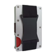 Minimalistična lesena denarnica iz češnjevega lesa in ohišjem iz letalskega aluminija ter z črno sponko za denar.
